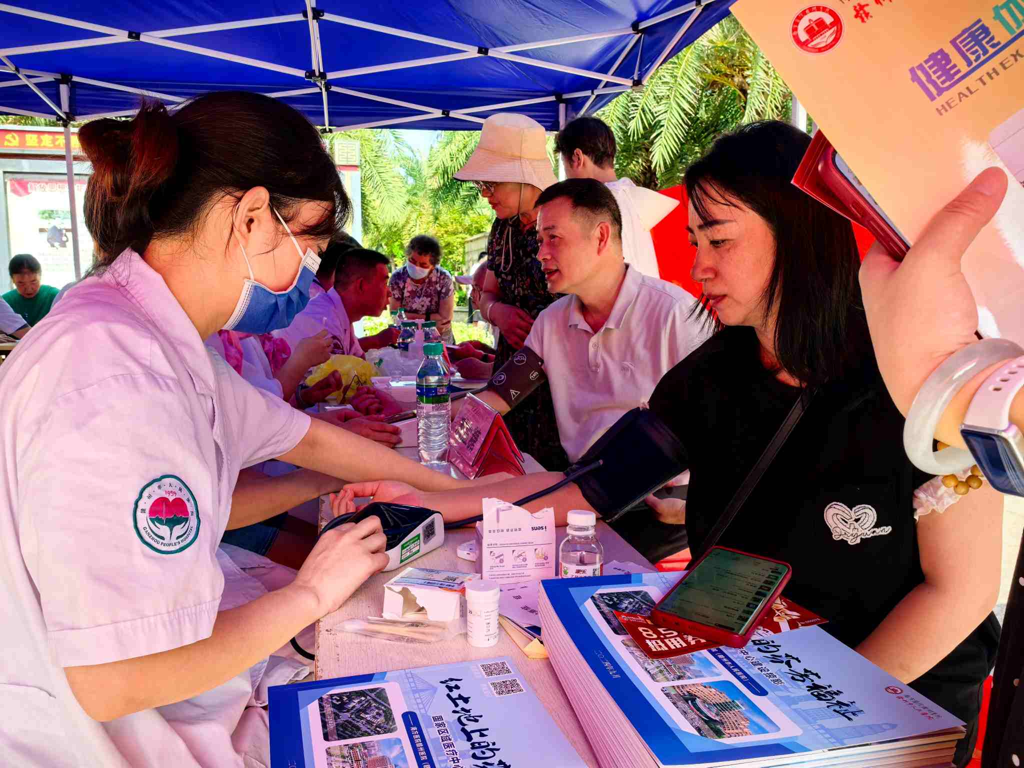 芳菲歇去何須恨,夏木陰陰正可人。為踐行“我為群眾辦實事”的服務理念,積極響應國家關于提升基層醫療服務水平、關愛居民健康的號召,切實解決群眾看病就醫的實際問題。在小區迎來業主入駐十周年慶典之際,7月5日上午燕興集團聯合南方醫院贛州醫院(贛州市人民醫院)博士團隊走進水南街道登峰社區公園壹號義診服務點,開展了“博士站一周年,院社合作啟新篇”為主題的大型義診活動。此次活動旨在為居民提供便捷、實用的服務,用愛意傳遞服務,用實際行動傳遞關懷,促進鄰里和諧,增強社區凝聚力,為社區居民提供免費健康檢查與咨詢服務,切實將優質醫療資源送到居民家門口,受到了廣大居民的熱烈歡迎和積極參與,為社區居民帶來了一場全方位、高質量的健康關懷盛宴。