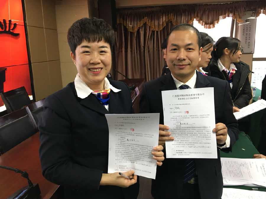 隨后,公司各運(yùn)營(yíng)經(jīng)理、各項(xiàng)目服務(wù)中心主任根據(jù)公司2018年經(jīng)營(yíng)管理目標(biāo),按照“以辦公樓住宅為兩翼,以學(xué)校醫(yī)院綜合體為重點(diǎn),以三高二新一現(xiàn)代為突破,全面實(shí)現(xiàn)智能信息化管理”的經(jīng)營(yíng)方針,分別向公司簽訂了《2018年目標(biāo)責(zé)任書》。