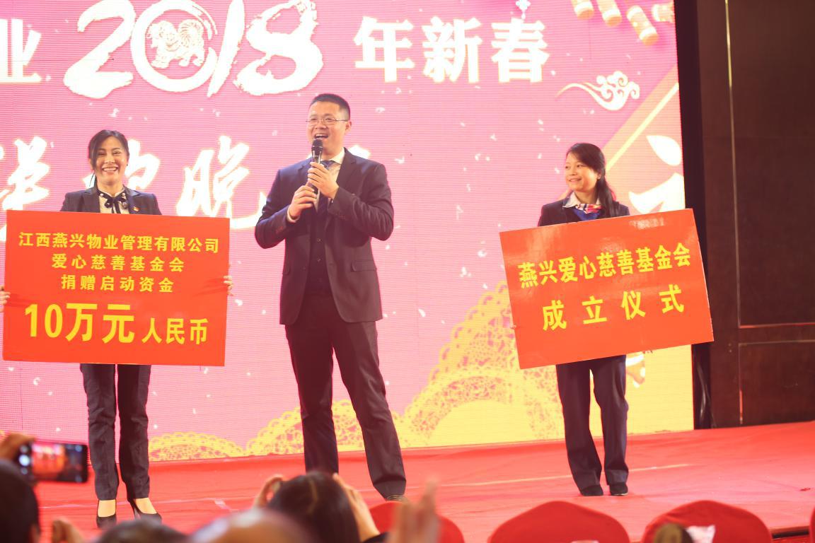 值得關(guān)注的是,本次晚會也是“燕興物業(yè)愛心慈善基金”的成立儀式。在晚會上,燕興物業(yè)愛心慈善基金會長夏峰介紹了基金會的基本情況,公司董事長劉燕代表江西燕興物業(yè)管理有限公司捐贈啟動資金10萬元。