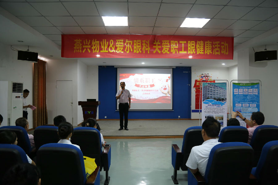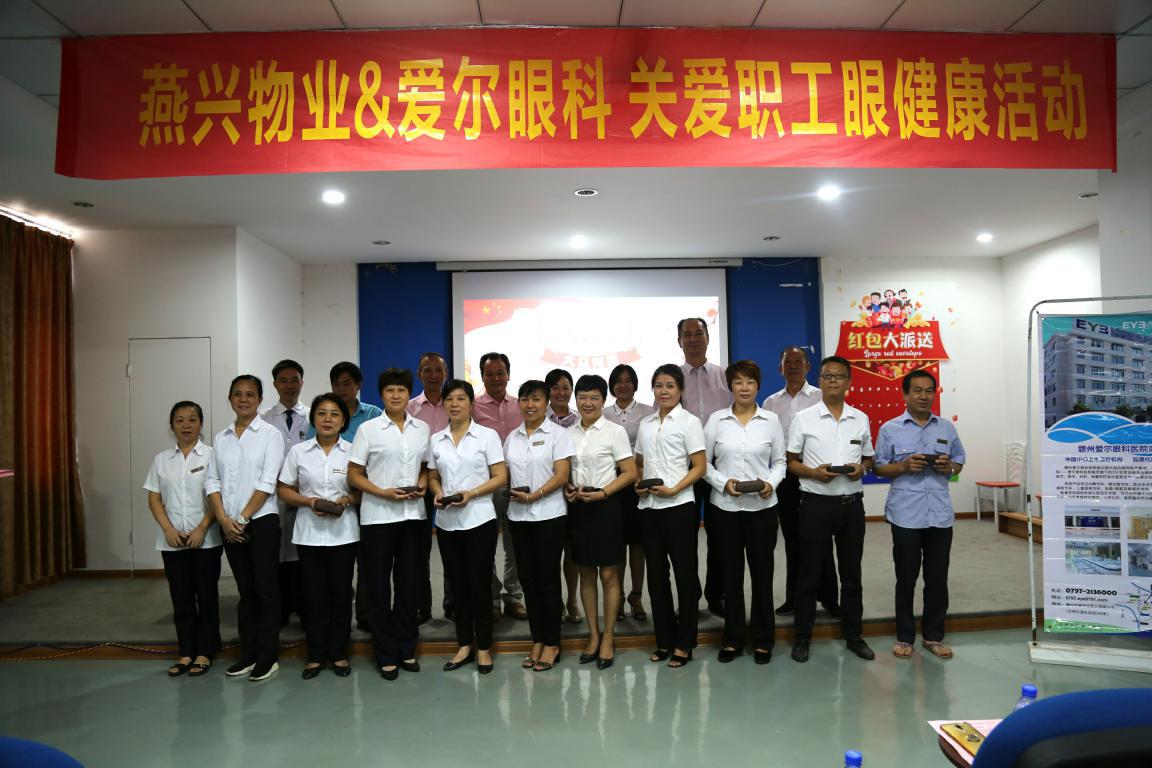 2018年8月21日上午,由江西燕興物業(yè)管理有限公司和贛州愛爾眼科醫(yī)院共同舉辦的“關(guān)愛職工眼健康”活動(dòng)啟動(dòng)儀式,在贛州愛爾眼科醫(yī)院會(huì)議室舉行。此次活動(dòng),受到雙方單位領(lǐng)導(dǎo)的重視和職工們的歡迎與支持,燕興物業(yè)有近40名職工參加了啟動(dòng)儀式。