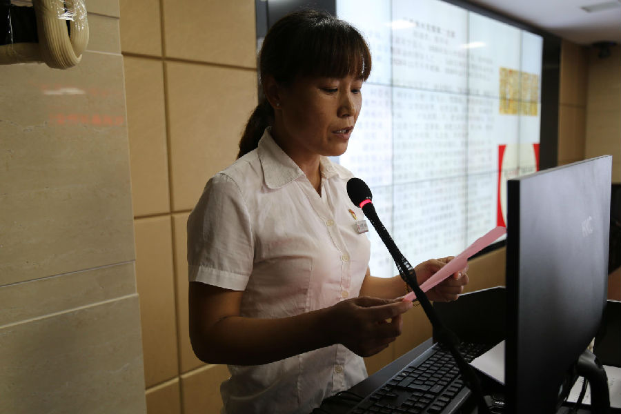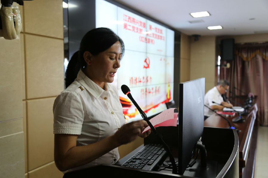 第二黨支部黨員蔡華英朗讀了王孝錫寫給父母的訣別信