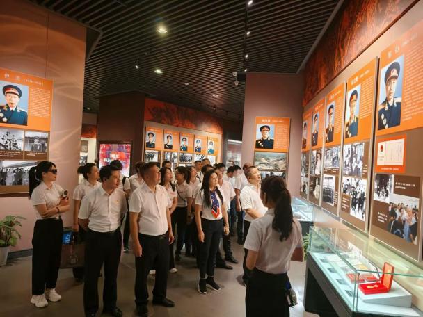 一進入將軍園,一座巍然聳立的大群雕便映入眼簾,三面軍旗雕塑格外醒目,仿佛在默默訴說著興國在革命戰爭年代為爭取自由解放所付出的巨大犧牲。在將軍館展廳內,講解員飽含深情地講述著將軍們的英雄事跡,從長征路上的艱難險阻,到抗日戰爭的烽火硝煙,再到解放戰爭和抗美援朝的浴血奮戰,先輩們的英勇壯舉一一展現。這些事跡不僅彰顯了將軍們卓越的軍事才能,更體現了他們堅定的革命信念和崇高的精神品格,讓在場的黨員干部們深受觸動。