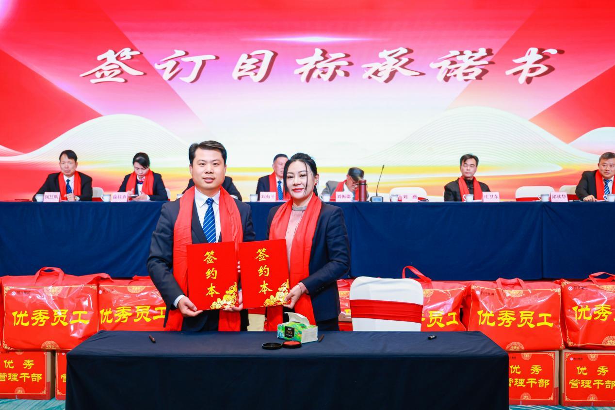 為確保2026年戰略目標落地,大會舉行目標責任書簽訂儀式。集團董事長劉燕與總經理邱欣華率先簽約,隨后總經理邱欣華分別與市場拓展部負責人、全國各地分公司負責人逐一簽訂目標責任書,以責任傳導凝聚發展合力,奏響實干攻堅的奮進號角。