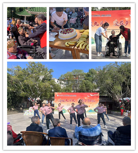10月23日上午,贛南醫(yī)學院第三附屬醫(yī)院醫(yī)養(yǎng)中心開展“情暖九月九 愛在夕陽紅”重陽節(jié)活動。活動中為老人準備了可口的水果、牛奶,志愿者和護工們?yōu)槔先藥砹司实母栉韬兔飨娫~朗誦等文藝節(jié)目,贏得了老人們的陣陣掌聲,讓老人們感受到了濃濃的節(jié)日氣氛,感受到了社會各界愛心人士的關懷和溫暖。活動最后,大家一起為10月份過生日的爺爺奶奶過了一個集體生日。